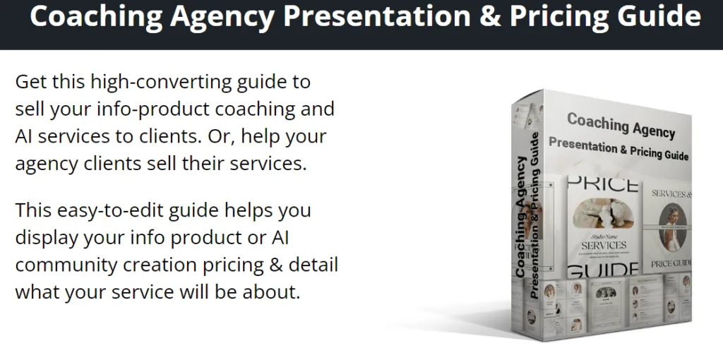 - DFY AI Community Coaching Agency Bundle – Get Coaching Client Welcome Packets, Coaching Agency Proposal Templates, Swipes to Close Clients, Legal Contract, and More