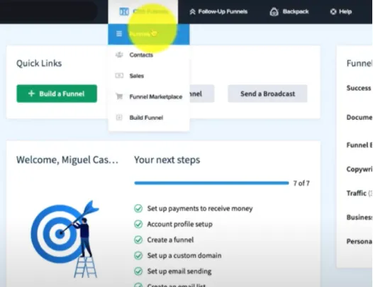 Go to the top Clickfunnels drop-down menu and from there, select Funnels as shown in the figure given below