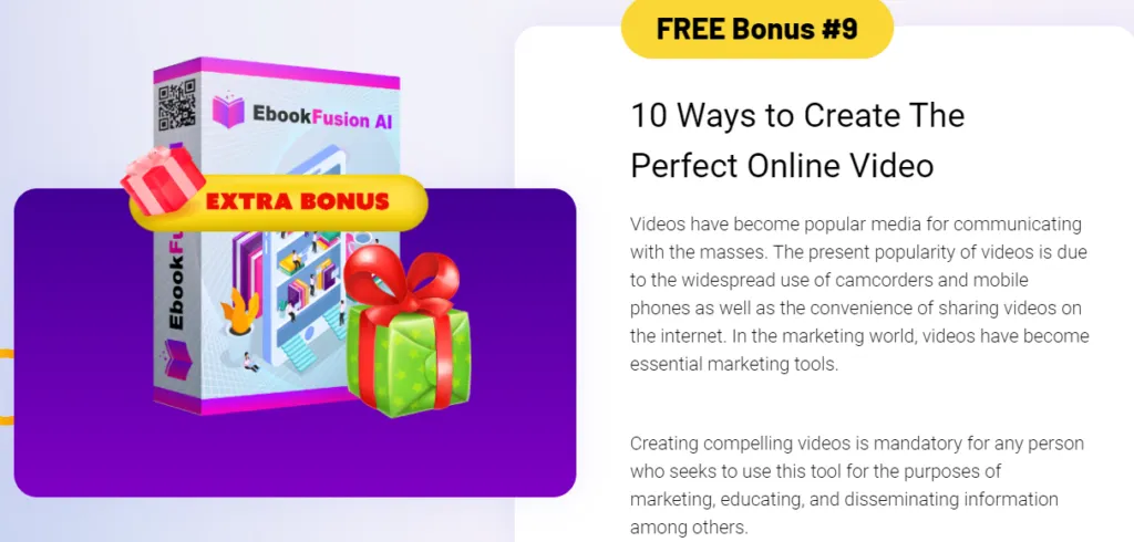 - Free Bonus 9: 10 Ways to Create The Perfect Online Video – Valued At $197