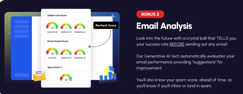 11.Email Analysis: Email success rate, spam score with recommendations.