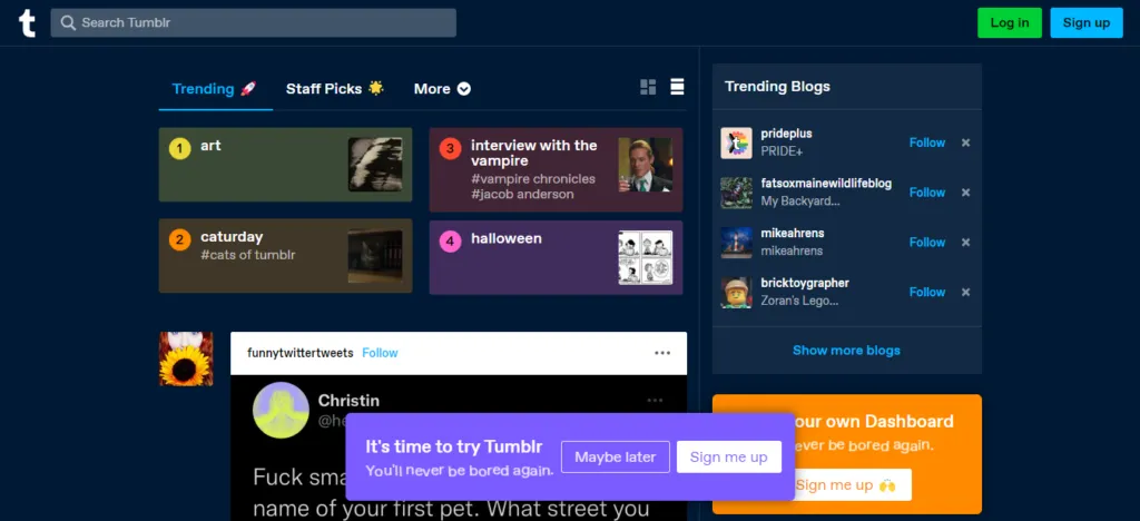Tumblr also excels at multimedia sharing, making it a preferred choice for visual bloggers seeking free blogging sites with strong media support.