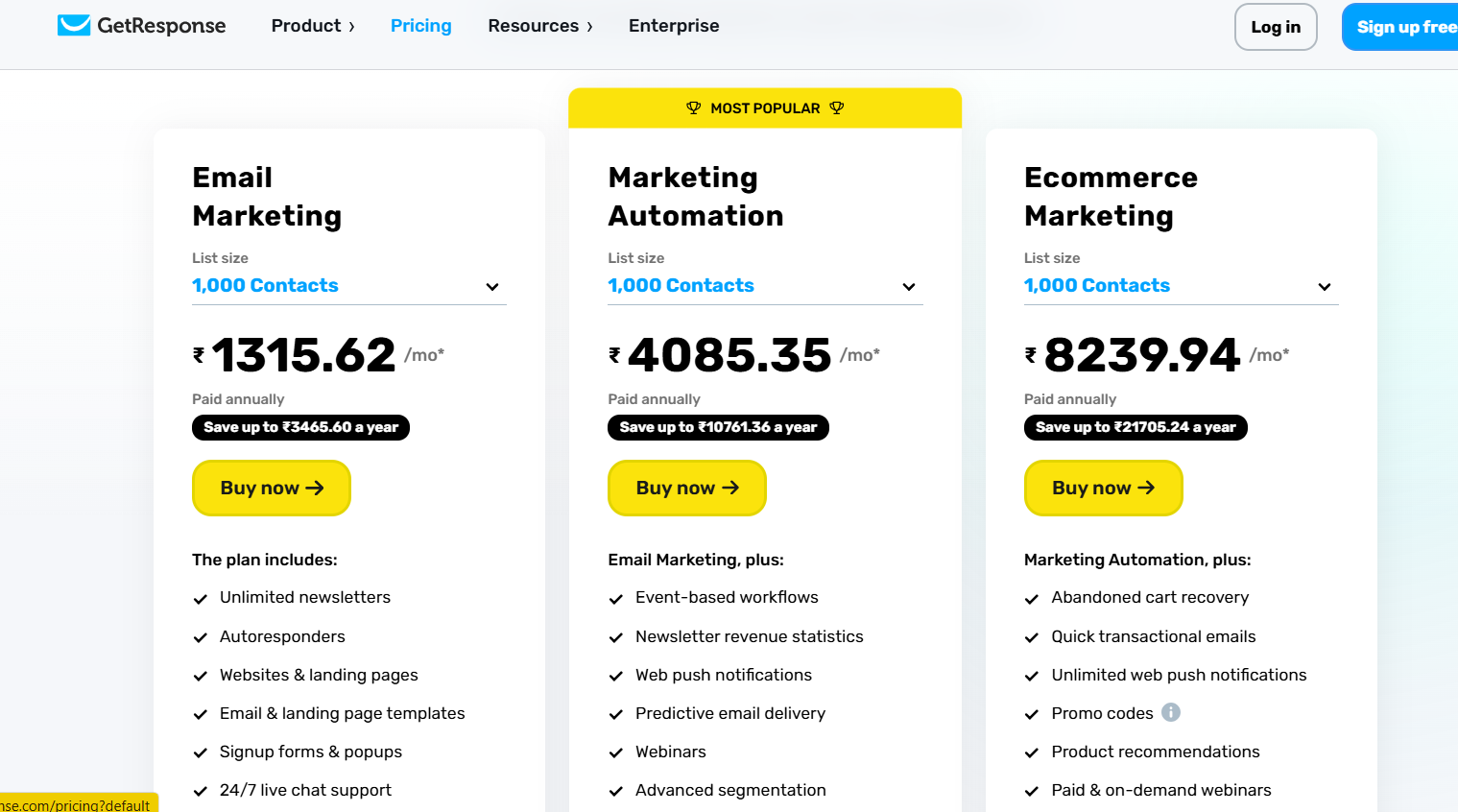 | Email Marketing | ₹1315.62/mo | Save up to ₹3465.60 a year |