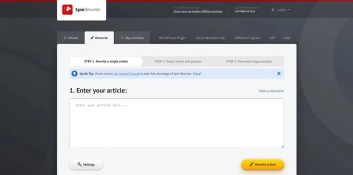 🍪 Goodie #4: Improved onboarding process that guides our newest users by the hand, all the way to their first finished top-quality spun article. This way everyone can succeed with spin rewriter review.