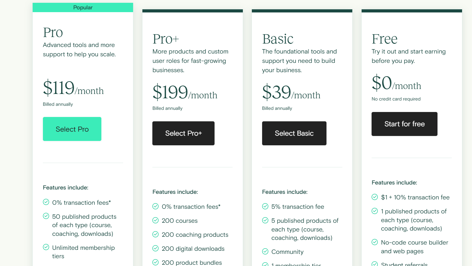 Built-in Marketing and Sales FeaturesDependence on Teachable’s Payment Gateway